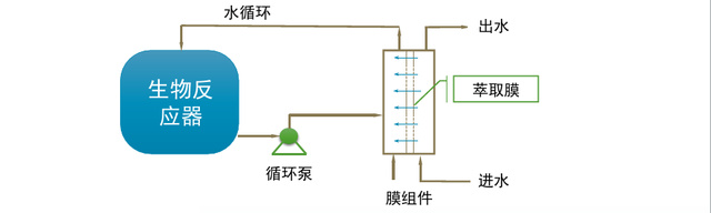 這種系統比較少的應用于大規模項目中,主要使用萃取膜將污水與生物反應器進行隔離,利用萃取膜的選擇透過性,使目標污染物透過,并進入生物反應器進行降解,而有毒有害的物質則被隔離。